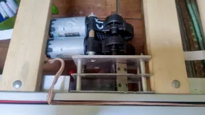 Watt pro Motor lässt sich schlecht sagen, da der Strom und somit die Leistung mit der Belastung steigt. Mit vollem Zugbandwickel (höchste Last) habe ich von allen 4 Motoren 8,5A. Das wären dann 102W bei 12V. Ich hab auch gemessen, als ich noch 2 Motoren hatte, da waren es 9,5A, da sie Motoren ausserhalb des optimalen Bereichs ihrer Kennline gearbeitet haben.
