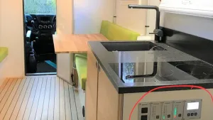 Gerade bin ich mit dem Innenausbau beschäftigt. Ich werde eine große U - Sitzgruppe im Heck verbauen und darüber hängt dann das absenkbare Hubbett. Für die Möbel verwende ich Pappelsperrholz welches ich teilweise beschichtet habe bzw. in Apfelbaum furniert. Technik versuche ich eher bescheiden zu bleiben. Momentan bin ich jedoch noch am Grübeln welchen Bodenbelag ich verlegen soll. PVC und Vinyl scheidet irgendwie aus, Linoleum käme evtl. noch in Frage, ein Stabdeckboden aus Kork (8mm) oder Holz (Birne würde gut zum Apfel passen) würde mir gut gefallen - Anregung diesbezüglich gerne willkommen. Wenn der Innenausbau etwas mehr vorangeschritten ist, schicke ich gerne wieder ein paar Fotos.