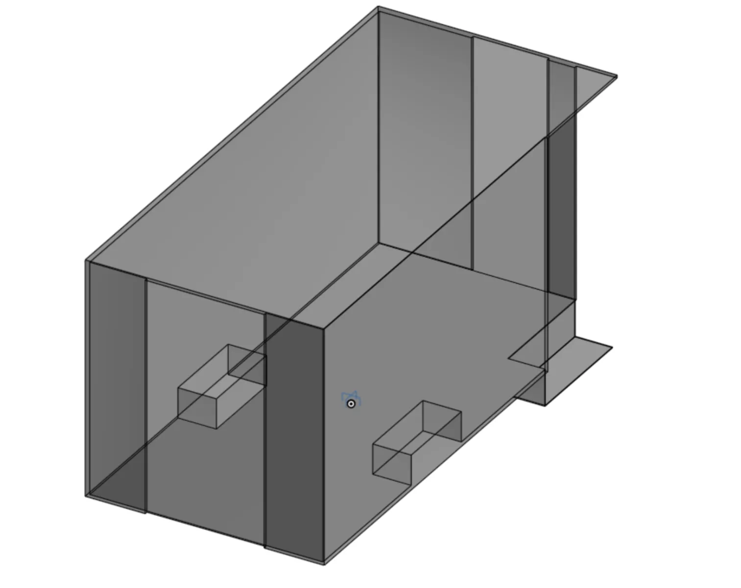 Hier ist mein CAD Model vom Aufbau von einem 2010er DHL Postkoffer vom MB Sprinter. Der einzige Unterschied zum Iveco ist, dass der Radkasten an einer anderen Stelle ist. Beim Sprinter ist er 130cm von der hinteren Wand und beim Iveco war es entweder 150 oder 160. Ich hatte es mir gezeichnet, aber das Maß ist mir leider verloren gegangen.
