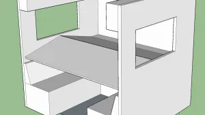 • Wenn Du das Doppelbett in einem Stück schwenken willst, würde versuchen, die Lehnen der Sitzgruppe klappbar oder wegnehmbar zu bauen, dann kommst Du mit dem Bett und dem Drehpunkt Deines Mechanismus tiefer.