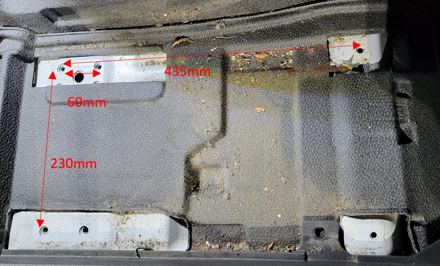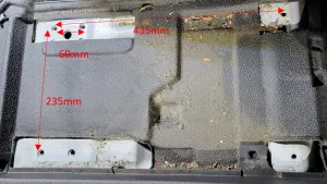 Dies sind die Maße der Befestigungen des Beifahrersitzes.