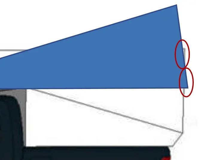 Ganz einfach, der Anschlag vorne am Alkoven, muss bei einem vom Heck zum Alkoven gehenden Dreieck die Winkelhalbvierende sein. Daraus ergibt sich mit den beiden am Heck liegenden Ecken ein Kreisabschnitt. Dann passt es sowohl mit klappen als auch mit dem Verschluss....