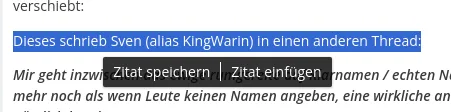 P.S. Anton einen Beitrag in einen anderen Thread zu zitieren finde ich auch nicht sonderlich komfortabel, war in der alten Software einfacher (bei mehreren Zitaten finde ich die neue Funktion hingegen sogar angenehmer).