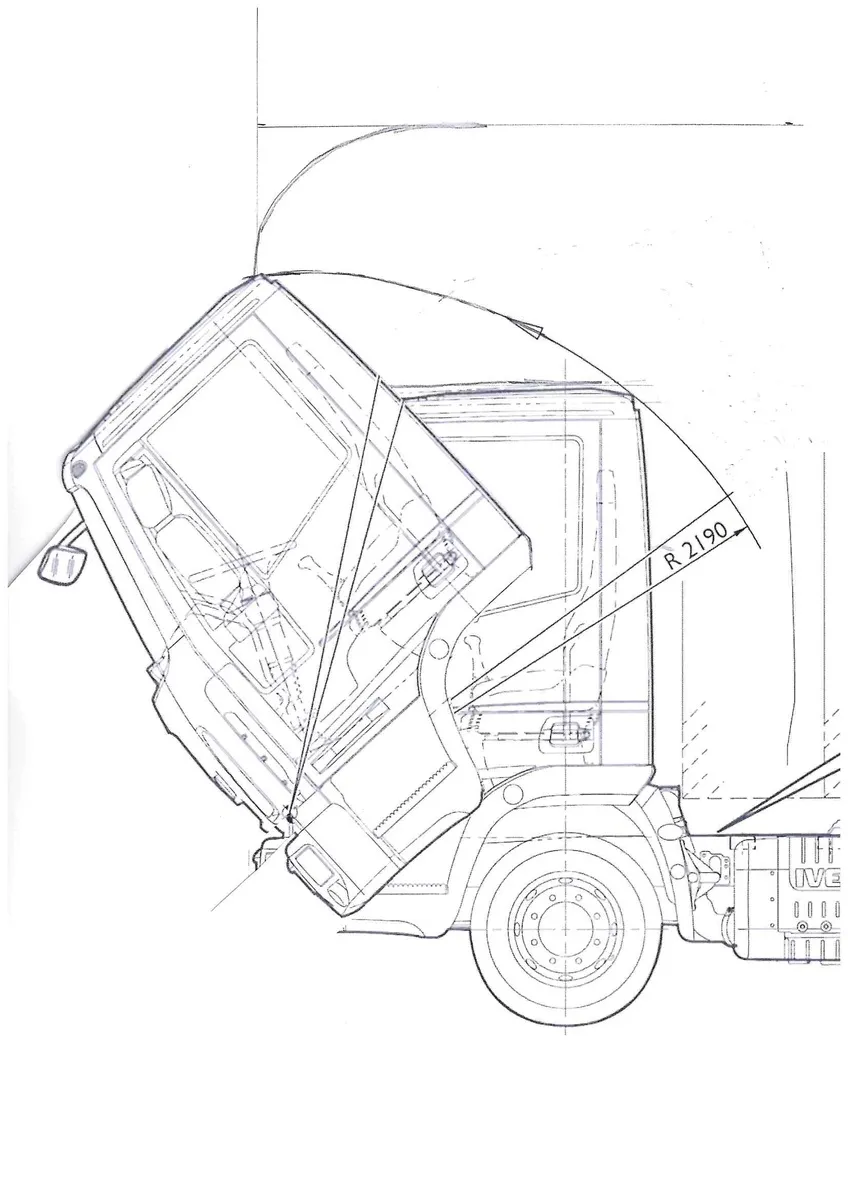 Oder du machst wirklich einen Zwischenrahmen, hinten Scharniere und kannst die ganze Kabine vorne knapp 1m anheben um das Fahrerhaus zu kippen. Das erfordert natürlich schon ein bisschen Aufwand. Alternativ zum Alkoven wäre ein Topsleeper auf dem Fahrerhaus.