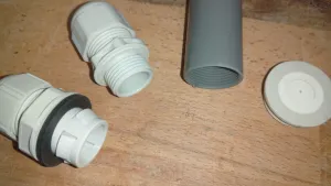 a) Musst du die Durchführung unbedingt kontern? Sonst kleb die doch einfach in das Loch und nimm so ein Standardteil.