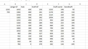 Ich habe für mein Beispiel den Verlauf der Handkräfte aufgeführt und für 70 kg Dachlast sehen die gut aus.