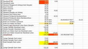 hast du berücksichtigt, das die Wände erst aufklappen müssen an den Bändern? Was ja bedeutet, das die Wände auf den ersten 10 Grad die halbe Kraft benötigen für 35 kg. Die Bänder die dann am Dach ziehen auch in einem sehr spitzen Winkel die Kraft ausüben und er senkrechte Anteil der Kraft dadurch sehr gering ausfällt?