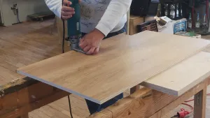 Bedenke: Kurze Kanten, z.B. an Schubladenblenden, lassen sich nicht oder nicht gut anfahren. Dann besser erst alle am Stück und nachher die Platte teilen und die Querkanten danach anbringen.