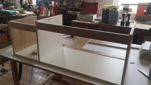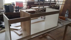 Danach sofort mit dem Bau des ersten Schranks begonnen. Die Vorgehensweise nach dem Zuschnitt ist folgende: