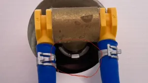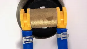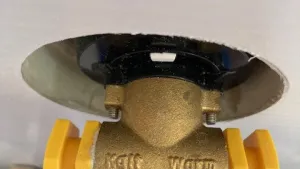 Viel tragischer ist, dass der Anschluss nach innen undicht ist. Es leckt aus dem umrandeten Bereich zwischen Messing und Kunststoff. Wenn das Ding nicht schon verbaut wäre, würde ich es zurückgeben.
