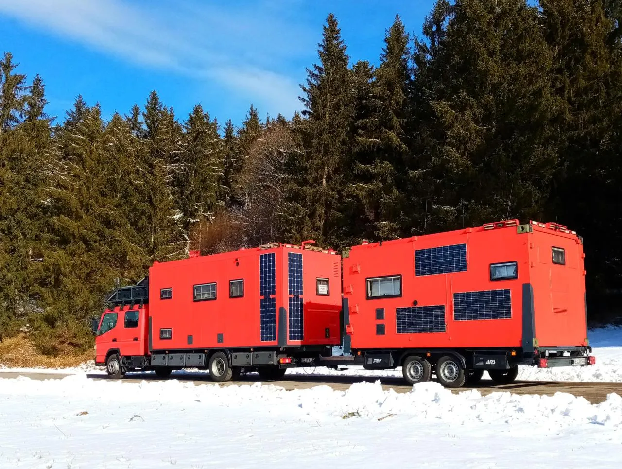 Meine Berechnung sagt, Kühlbox 33% Betriebszeit, Dieselheizung mit etwas um 8 Watt pro Stunde 12 Stunden am Tag. Solartasche für die Ausrichtung zur Sonne mit 200 Watt und jeweils Links und rechts an der Kabine 100 Watt Solar für den Betrieb, wenn keine Solartasche aufgestellt werden kann. Und ich habe 100Ah LifePo aus der alten Kabine.