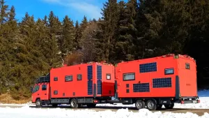 Meine Berechnung sagt, Kühlbox 33% Betriebszeit, Dieselheizung mit etwas um 8 Watt pro Stunde 12 Stunden am Tag. Solartasche für die Ausrichtung zur Sonne mit 200 Watt und jeweils Links und rechts an der Kabine 100 Watt Solar für den Betrieb, wenn keine Solartasche aufgestellt werden kann. Und ich habe 100Ah LifePo aus der alten Kabine.