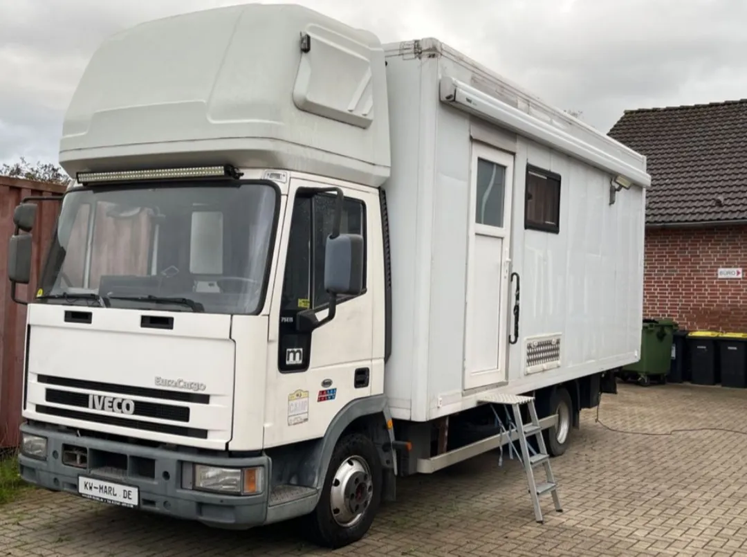 Es handelt sich um einen Kofferaufbau auf einem IVECO - Eurocargo.