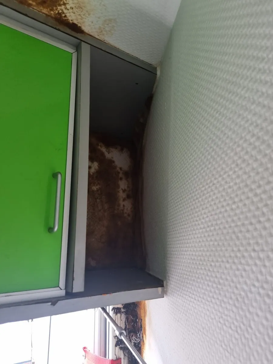 So wie die Möbel aussehen, muss das in der Ecke alles raus und entsortgt werden. Die Frage ist, was ist mit dem Koffer? Hat der innen Holz? Dann wird das auch schlecht sein. Auf jeden Fall musst du die Schadstelle finden und reparieren. Dann kann man sehen wie es weiter geht.