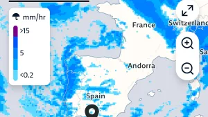 Der Screenshot zeigt die Prognose der Summe aller Niederschläge der nächsten 8 Tage.