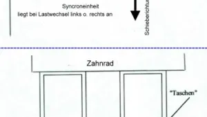 Vielleicht kann man sich so besser vorstellen was mit dem Eingriff der Zahnräder gemeint ist, beim Schaltvorgang woran es dann hakt.