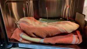 ich sag mal: keine Angst vorm Drehteller. Das ganze Zubehör lagert bei mir während der Fahrt in der Mikrowelle mit Geschirrtuch eingewickelt. Panasonic NN-CT56. War eine gut Entscheidung, kann alles was ich brauche. Ich mache das Teil immer nach Benutzung Stromlos. Da man sofort loslegen kann, muß ich auch keine Uhrzeit einstellen. Es gibt ja Geräte, da muß vor der Bedienung zuerst die Zeit aktualisiert werden. Das ist hier nicht der Fall.
