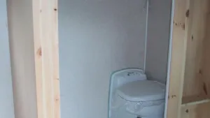 Weil es jetzt mit den Bildern so gut klappt, kann ich unsere Dusche zeigen. Sie ist 80 mal 80 cm groß und wurde in einen Rahmen gesetzt. Vorher kam Bauschaum zum kleben und isolieren auf den Boden. Im gleichen Raum wird auch die Toilette und das Waschbecken untergebracht Damit nicht alles naß wird, kommt zum Duschen ein abnehmbarer Duschvorhang in die Decke, der direkt danch naß wieder rausfliegt. Das spart dann lästige Wischerei.