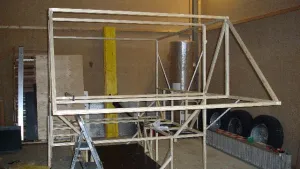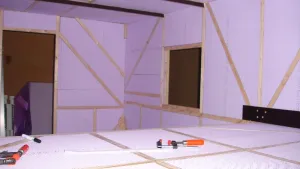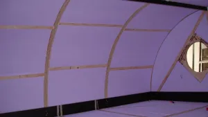 Ca. 150 einzelne Isolations-Platten mussten zugeschnitten werden. Eine mühselige und zeitaufwendige Arbeit. Am Schluss werden die Platten nummeriert und wieder abgebaut. Einige Bilder des Baufortschrittes. Nun kann man endlich die Form und Grösse der Kabine sehen