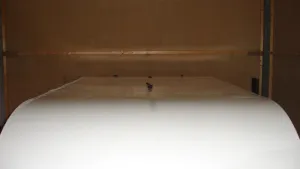Alleine ist es eine mühsame Arbeit. Habe eine Rolle 2m Breit und 15m lang. Dicke 2mm. Rolle ausbreiten, Dachlänge ausmessen, 4,07m, zuschneiden und dann die ca 8m2 GFK auf's Dach heben. Nicht schwer, aber unhandlich. Macht sowas lieber zu zweit. Es ist mir dennoch gelungen. Habe die Latten und Dachlukenöffnung eingezeichnet. Muss ja vor dem verkleben die flächen noch anschleifen. Genauso mit der Rückwand verfahren. Sieht gut aus das weisse GFK. einige bilder im Anschluss. Mehr in Kürze.