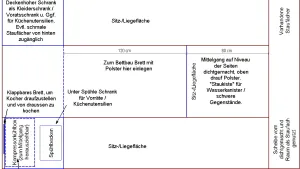Also, Staubox kürzer und um das Maß den Tisch in Richtung Führerhaus versetzen? Wo verstau' ich das Polster, das auf dem Tisch liegt, wenn er als Bett genutzt wird?