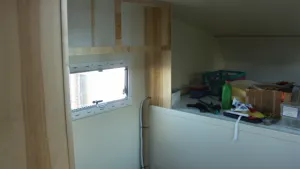 Als nächstes kommt die Schiebetür (20mm Sandwich) für die Toilette, in der Alkovennase ein Ablageboard und der Bodenbelag und ncoh die ganzen Abdeckleisten für die Kanten. -