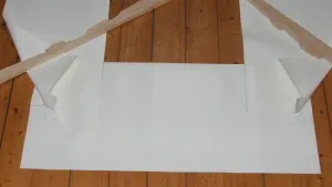 Das erste Bild zeigt die erste Verklebung. Der Ausschnitt mittig ist der Durchgang: Höhe 87, Breite 47 (mehr gab das Führerhaus nicht her). Im zweiten Bild seht Ihr, wie die Plane zu einem U umgelegt werden wird. Das dritte Bild zeigt das fertig verklebte viereckige U.