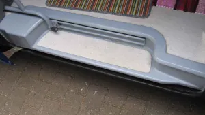 Habe das Teil auch ausgebaut, Plastik war gebrochen. Die waren bei mir auch "nur" geklebt. Dann mal vorsicht beim Ausbau. Das Teil ist scheinbar 'ne Carthago-Extraanfertigung. Die VW-Teile sind zu kurz, d.h. diese reichen nicht bis zur unteren Führung der Schiebetür - es bleiben mit dem Teil dann ca. 1 cm Metall sichtbar.
