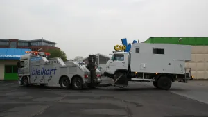 Hat einen MAN Allrad, ca. 8 Meter.