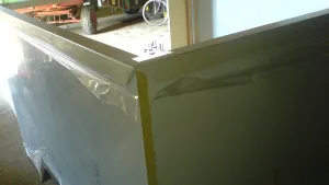 So, ich habe etwas weiter gearbeitet: der Durchgang zum Fahrerhaus ist jetzt fertig, jede Menge GfK-Winkelleisten und Sikaflex sind verbaut (ausserdem ist die Dachplatte einmal provisorisch aufgelegt):