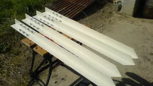 ich brauche 'mal wieder Euren Rat: auf dem Bild unten sieht man das Scharnierband aus dem LKW-Bereich, das ich für die Kabinentür einsetzen will. Es ist sehr steif, d.h. es treten ziemliche Kräfte am Übergang Alu-Scharnier/GfK-Profil auf - ein provisorischer Einbau ist problematisch: bei Fixierung mit zwei Schrauben ist mir das Scharnier sofort ausgebrochen.