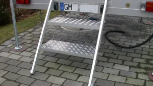 Die Leiter ist jetzt zusammengeschraubt und an der Kabine montiert.