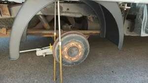 Ergebniss: wenn die Achse an den 6cm-Gummipuffer schlägt hat sie noch 3cm Luft zum Kotflügel.