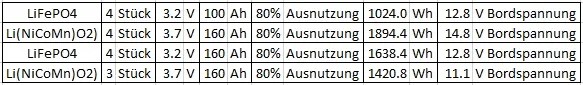 11.1V halte ich auch für zu niedrig. Wenn wir davon ausgehen dass die Chemie eine ähnliche Entladekurve hat wie Lifepo dann kann man annehmen dass wenn die Geräte mit der tiefen Spannung laufen, dies wohl über 70-80% der vorhandenen Kapazität auch tun werden. Aber nur die geringste Abweichung wird zu Problemen führen. Das selbe mit 4 Zellen am anderen Ende der Spannungstolleranz. Da bist du immer irgendwie an der Grenze.