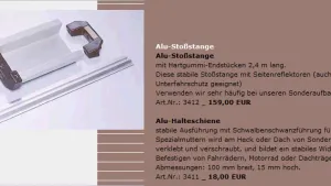 Die wurden von Fa Ormocar hinten aufgeklebt und mit Edelstahl-Blechtreibschauben befestigt. Die Schrauben hätten man meiner Ansicht nach besser weggelassen, denn die greifen eh nur in der äuseren GFK Schicht und statt dessen nur geklebt. An den Schienen hängt bei uns z.Zt nur der Fahrradträger.