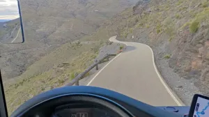 Ein spannender Tag im Reiseleben.. Ich bin in der Halbwüste bei Tabernas, natürlich im letzten Offroadloch das es zu finden gibt. Eine schöne Piste hat mich hierher geführt und jetzt schaue ich zum Las Hoyas Gipfel... Meine Detailkarte zeigt , da geht eine Strasse ziemlich hoch hinaus in diese Richtung... Also los... Ich sage mal " Erstbefahrung" von einem Liner plus Anhänger in die Sierra de Los Filabres.. Auf erstmal guter zweisuriger Strasse geht es mit 8% leicht bergan... Dann biegt die 4406 links ab Richtung Castro de Filabres... Es wird schmäler und steiler.... Einige Kehren gehen genau mit dem Wendekreis vom "Dickschiff"... Ob der Anhänger jetzt Sinn macht, lassen wir mal dahingestellt...