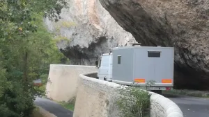 Übrigens in der Gegend ein wenig westlich in der Katharergegend unterhalb von Queribus oder Peyrepertuse gibts eine Schlucht, da kämste im damaligen Zustand nicht durch. Ich musste als 1.90 m Kerl in den Rasten meiner BMW Enduro (800 GS) stehend an ein oder zwei Stellen den Kopf einziehen....also zwei VW Bullis T 3 oder so hätten sich an den Stellen nicht begegnen können....dafür gibts dann Ausweichstellen, die bei Deinem breiten Gespann aber nix nützen...