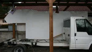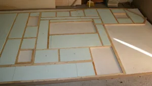 Angespornt durch die Beiträge von Joe/Tango "Ich baue mir eine Wohnkabine" wollte ich auch die Wände selbst bauen, also keine Sandwichplatten. Im Gegensatz zu Joe (meine Kabine ist wesentlich größer) baute ich nicht zuerst dan ganzen Aufbau im Holzfachwerk, sondern klebe mir die einzelnen Wände am Boden liegend zusammen, um diese danach auf dem Fahrzeug zusammenzustellen, aber der Wandaufbau bleibt der selbe.