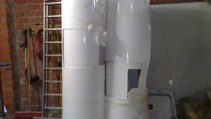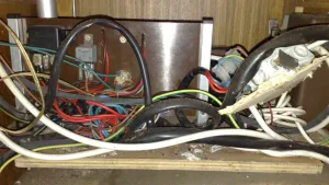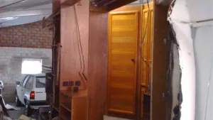 sichtbar wird das, durch den zum teil stark vermoderten org. gerüst, dieses beinhaltet kaum noch kontakt zur innenbeschichtung und zum teil sind ganze felder zwischen den schrankbefestigungen total verrottet, dennoch hat es noch verwunderlich gute und stabile dienste geleistet