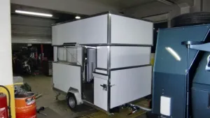 Am Anfang wollte ich meinen Motorradanhänger so umbauen das ich ihn an meinen VW T3 (mit Staukasten hinten) überhaupt anhängen kann. Dazu war erforderlich eine längere Zugdeichsel einzubauen. Dann kam mir der Gedanke dass es nicht schlecht sei, wenn der Anhänger geschlossen ist. Erst als ich den Anhänger komplett zerlegt hatte stellte ich fest, das nur noch die Achse übrig war. Welch eine Verschwendung. Alles wieder zusammengebaut (Motorradanhänger wird verkauft). Neue Achse vor allem Breiter im Internet mit Felgen bestellt.