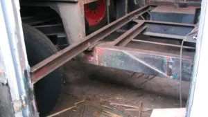 Direkt hinter den Vorderrädern haben wir einen Träger unter den Rahmen geschweißt. Mir fiel doch letzte Tage noch ein, daß man den Wagen ja auch aufbocken können muß (fast vergessen :shock: ). Hinten an den Ecken sind dann auch noch stabile Aufnahmen für Stützen hingekommen.