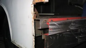 Originale Bilder der hinteren Schürze habe ich keine gefunden, deshalb haben wir diese so ungefähr wieder aufgebaut. Aus den alten Resten konnte man erahnen wie diese früher aussah.