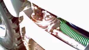 Die Lösung war eine zusätzliche Kette hinten welche die Verkanntungen verhinderte.Nach Fahrradkette kam eine Motorradkette zum Einsatz.