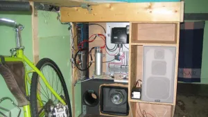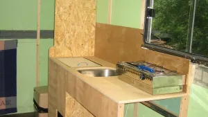 Inzwischen haben wir weiter gebaut. die Duschkabine - Rohbau - steht. Sichtflächen in Birke-Multiplex, verdeckte Platten sind OSB - alles 12mm