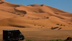 Der gesamte Ausbau erfolgte mit matt lackiertem Birkensperrholz, als Fußboden dient braunes Bambusparkett. Massive Vollauszüge im Küchenblock, solide Arbeits- und Tischplatten, Fingerschnäpper aus dem Bootsbau und eine robuste Fertigung ergeben einen Ausbau, den so schnell nichts erschüttern kann, nicht einmal mehrstündige Schotterpisten in Marokkos Antiatlas.