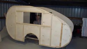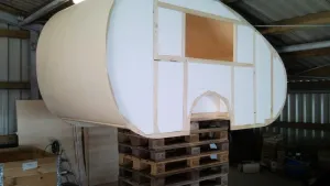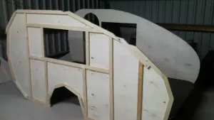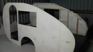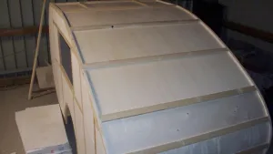 Letztendlich wurden durch meine Planung alle meine Wünsche erfüllt. Mein Wohnwagen wird 155cm Breit (149cm Aufbaubreite), 300cm Lang (mit deichsel 350cm)und etwa 170cm hoch. Der Boden des Wohnwagens, also die Grundplatte besteht aus 15mm Siebdruck, und der Aufbau wird aus einem 3mm Pappelsperrholz und 20mm Styropor Sandwich Hergestellt. In Den Wänden sind 20mm Holzleisten als Rahmen.An den Seiten kommt jeweils ein Ausstellfenster, wodurch es auch im Sommer nicht all zu warm im Wohnwagen werden sollte. Ob Ich noch ein Ausstelldach einbauen werde steht noch nicht fest.