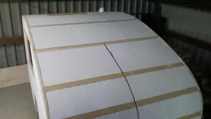Heute habe ich mit dem Bau angefangen. Ich habe das Pappelsperrholz und die Leisten Geholt. Das 3mm Sperrholz ist so Dünn, das es sich schon von alleine biegt. Als die 12 Sperrholz platten unverzurrt auf dem Anhänger Lagen, hob sich eine schon nur durch einen leichten Windhauch fast vollständig hoch. Die Leisten wurden Extra für mich auf genau 20mm gehobelt, da es normalerweise nur 22 oder 18mm Gibt. Das ist aber beim Sandwich Aufbau mit 20mm Styropor ziemlich ungeeignet. 90M für knapp 60€. Gut verzurrt ging es dann die 115km zurück.