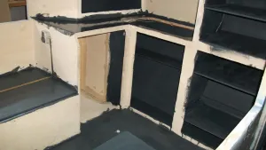 Im innenraum habe ich jetzt die ganzen stauräume, den Boden und die Küchenplatte schwarz lackiert.