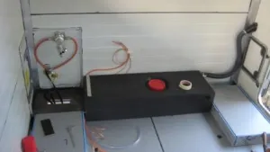 Die Kabine wird ähnlich wie bei Bimobil mit einem Zwischenrahmen direkt auf den Rahmen gesetzt und aus Sandwichplatten gebaut.