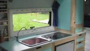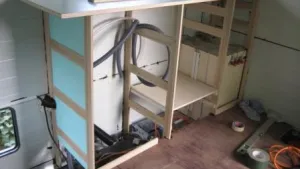 Über der Sitzgruppe im Heck ist ein Klappbett geplant, so hätten die Kinder jeweils ein eigenes Bett.